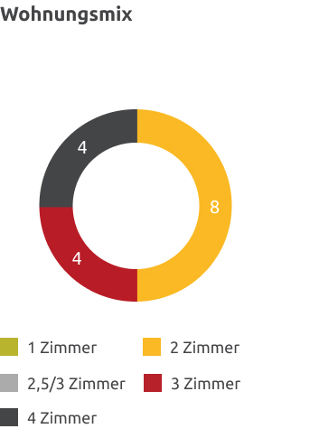 Der Neubau umfasst einen durchdachten Wohnungsmix. Acht Wohnungen umfassen zwei Zimmer, vier Wohnungen sind 3-Zimmer-Wohnungen und vier weitere Wohnungen verfügen über vier Zimmer.