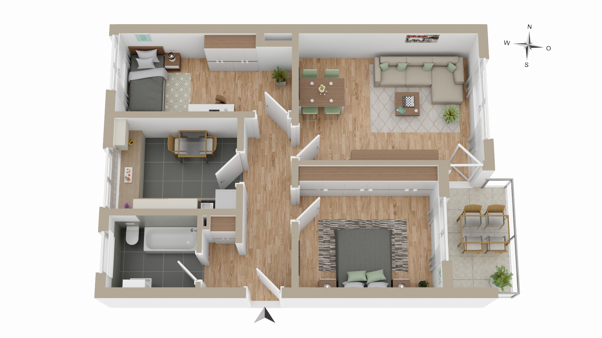 Die Wohnung verfügt über zwei gemütliche Schlafzimmer, die vielfältige Nutzungsmöglichkeiten bieten – ob als Kinderzimmer, Arbeitsbereich oder persönlicher Rückzugsort. Das lichtdurchflutete Wohnzimmer bildet das Herzstück der Wohnung und bietet direkten Zugang zum schönen Balkon, der zu entspannten Stunden im Freien einlädt.