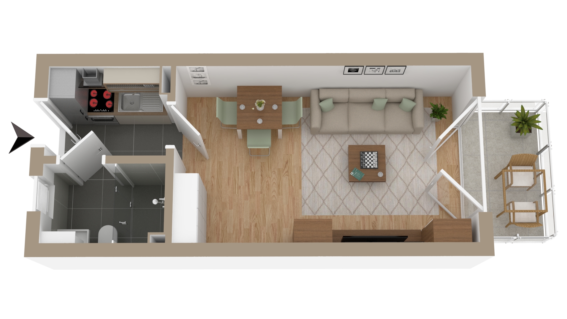 Die moderne 1-Zimmer-Wohnung befindet sich in einem Neubau aus dem Jahr 2019 und überzeugt durch ihre zeitgemäße Ausstattung sowie die helle und freundliche Atmosphäre. Der Wohn- und Schlafbereich ist großzügig geschnitten und bietet vielfältige Möglichkeiten zur individuellen Gestaltung. Eine moderne Einbauküche mit allen notwendigen Elektrogeräten ist bereits integriert und ermöglicht komfortables Kochen. Das Badezimmer ist hell gefliest und mit einer praktischen Dusche ausgestattet. Die Wohnung ist öffentlich gefördert und kann ausschließlich mit einem gültigen Wohnberechtigungsschein angemietet werden.