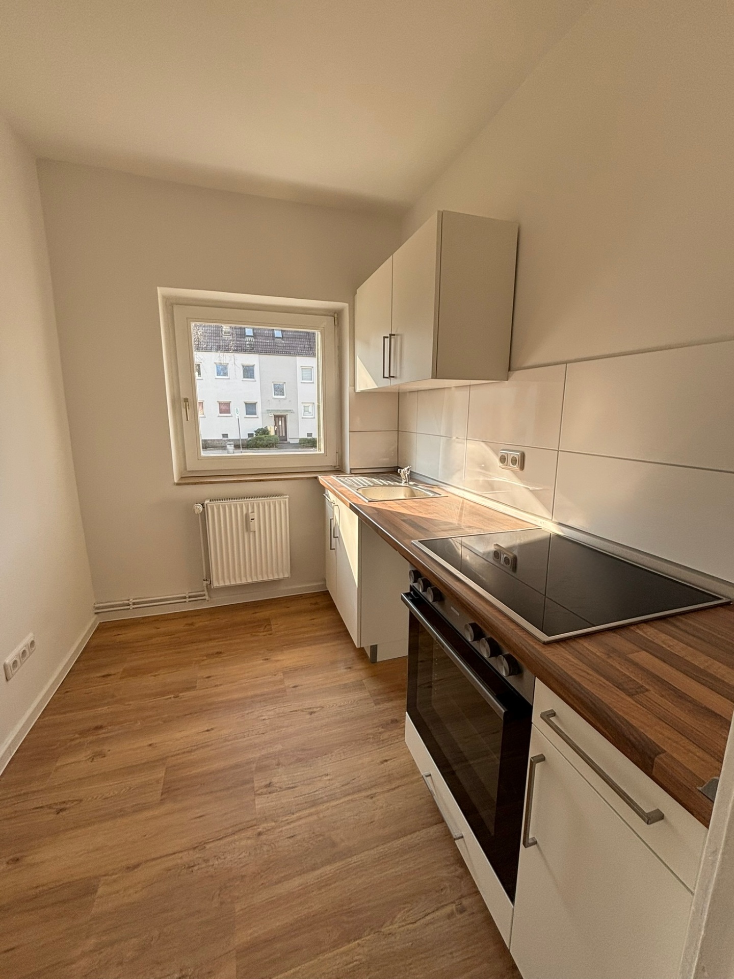 Diese helle und gut geschnittene 2-Zimmer-Wohnung im 1. Obergeschoss bietet ein angenehmes Wohnambiente und eignet sich ideal für Singles oder Paare. Das Wohnzimmer überzeugt durch seine freundliche Atmosphäre und lässt sich vielseitig einrichten. Das Schlafzimmer schafft einen ruhigen Rückzugsort. Das moderne Duschbad mit Fenster sorgt für Tageslicht und eine optimale Belüftung. Die Einbauküche ist mit Herd und Backofen ausgestattet und direkt bezugsfertig, sodass Kochen und Genießen sofort möglich sind. Durch die Lage im 1. Obergeschoss ist die Wohnung bequem erreichbar. Insgesamt bietet das Objekt eine attraktive Kombination aus funktionaler Ausstattung und wohnlicher Atmosphäre.