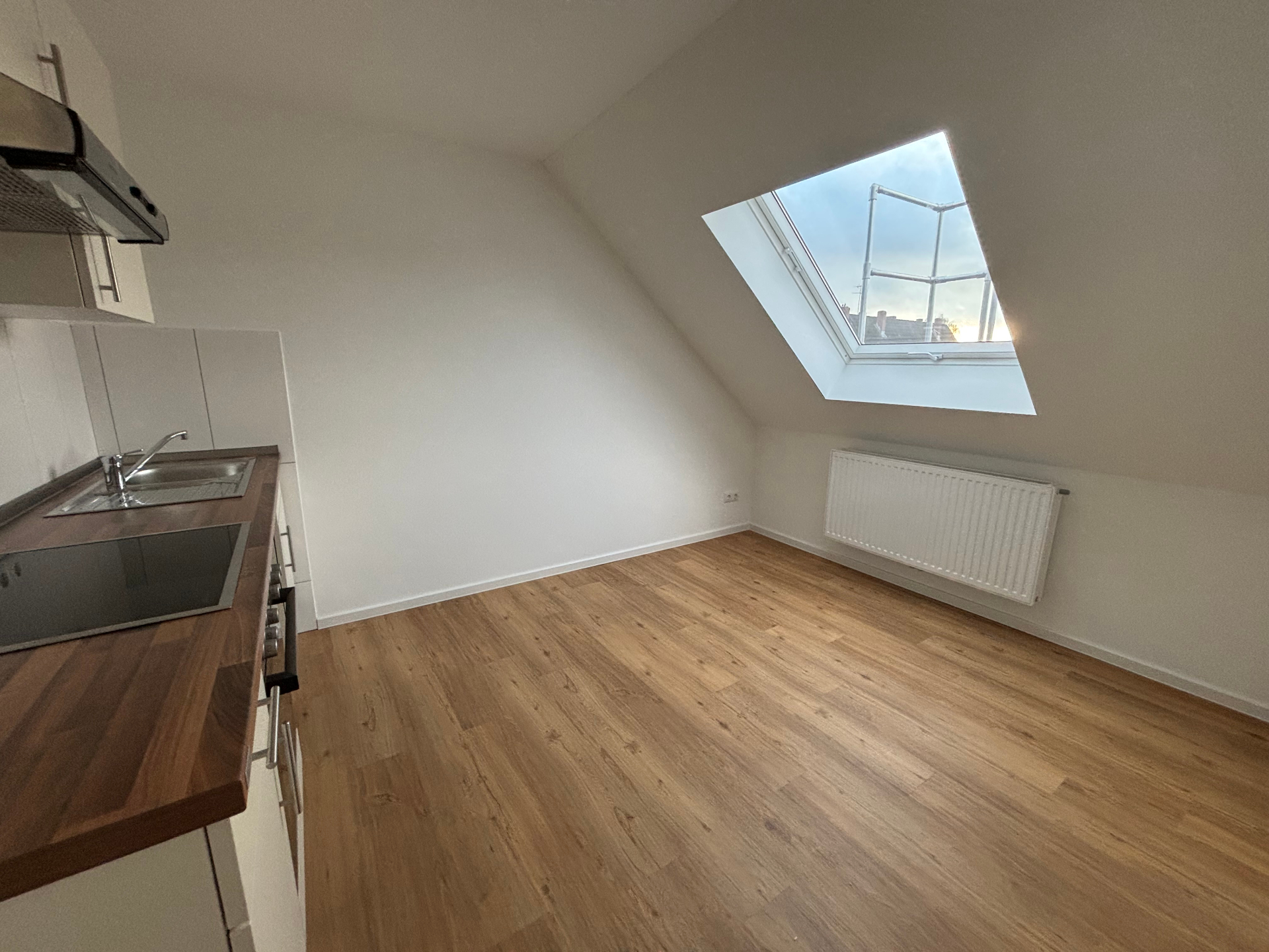 Diese neu ausgebaute Dachgeschosswohnung in Itzehoe bietet auf 44,22 m² modernes Wohnen mit durchdachter Raumaufteilung. Die Wohnung befindet sich im Erstbezug und präsentiert sich in einem zeitgemäßen, stilvollen Design. Der offene Wohnbereich mit integrierter, neuer Einbauküche schafft eine einladende Atmosphäre und bietet genügend Platz zum Wohnen und Kochen. Besonders hervorzuheben sind die schönen, sichtbaren Holzbalken, die dem Raum Charakter und Wärme verleihen.