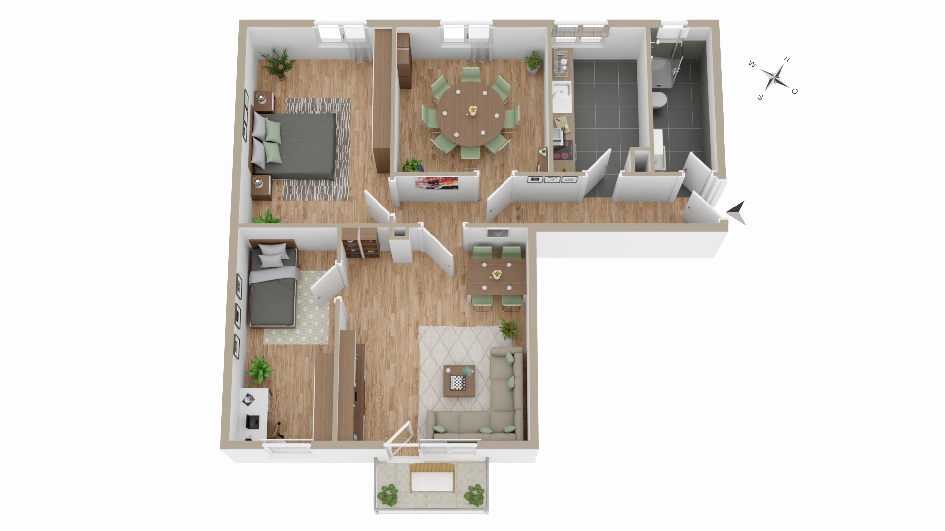Dieses Objekt besteht aus 2 ganzen und 2 halben Zimmern.