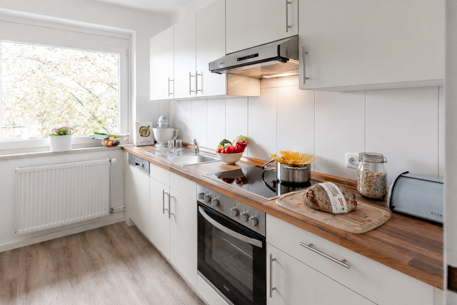 Auch die Ausstattung lässt keine Wünsche offen: Die Wohnung verfügt über eine neue Einbauküche, die funktional und modern gestaltet ist. Das ebenfalls neu hergestellte Badezimmer mit Dusche überzeugt mit einer zeitlosen und gepflegten Ausführung.