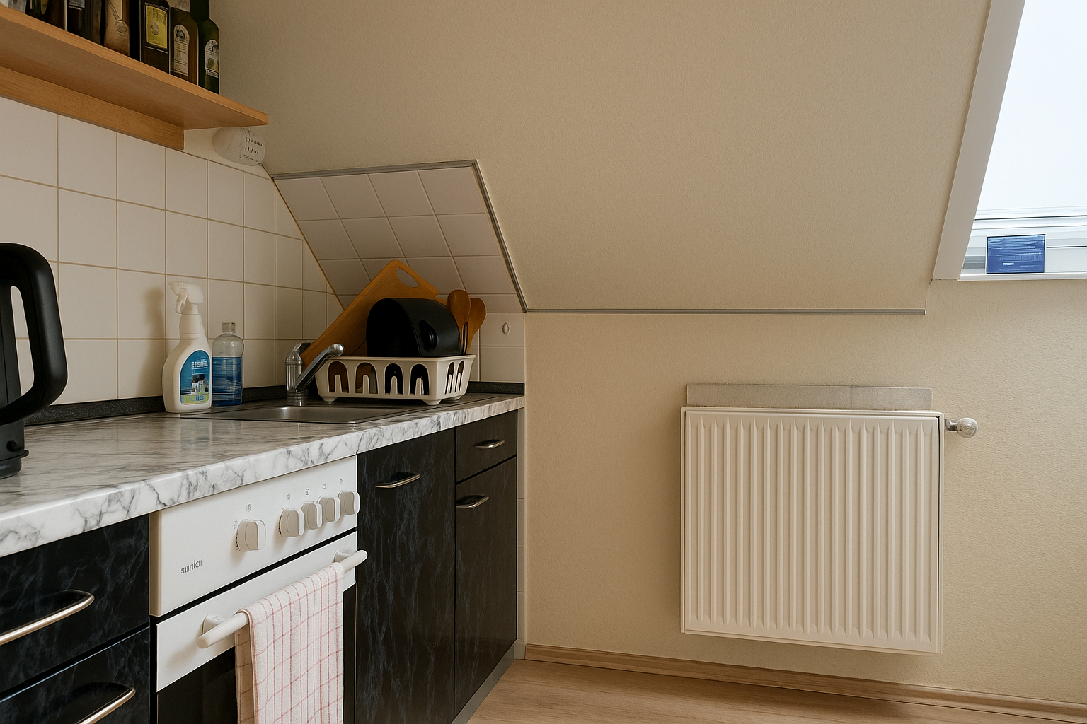 Diese charmante Dachgeschosswohnung besticht durch Helligkeit, Funktionalität und ein gemütliches Wohnambiente. Das moderne Duschbad mit Fenster sorgt für Tageslicht und Komfort, während die Einbauküche zum Kochen und Verweilen einlädt. Zwei praktische Abstellräume bieten zusätzlichen Stauraum für Ihre persönlichen Dinge, ergänzt durch einen separaten Kellerraum. Eine Gegensprechanlage rundet die Ausstattung ab und sorgt für Sicherheit und Komfort