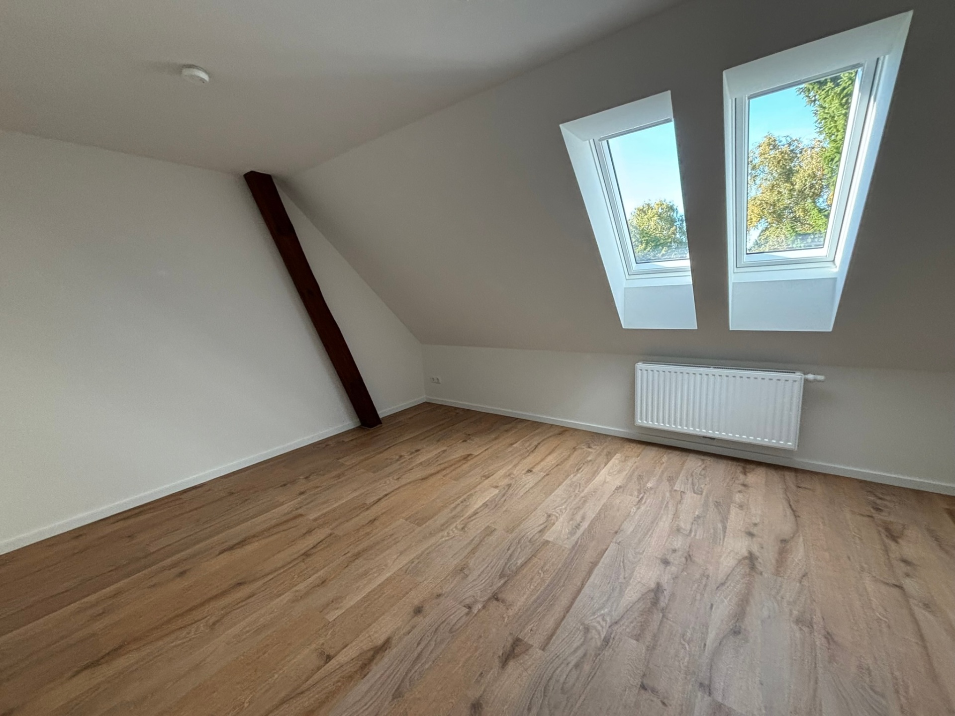 Hochwertiger Vinylboden sorgt für ein stimmiges Ambiente und unterstreicht das Wechselspiel aus moderner Klarheit und rustikalem Charme. Veluxfenster öffnen den Blick in den Himmel und lassen die Räume erstrahlen. Ein praktischer Abstellraum rundet das durchdachte Wohnkonzept ab.