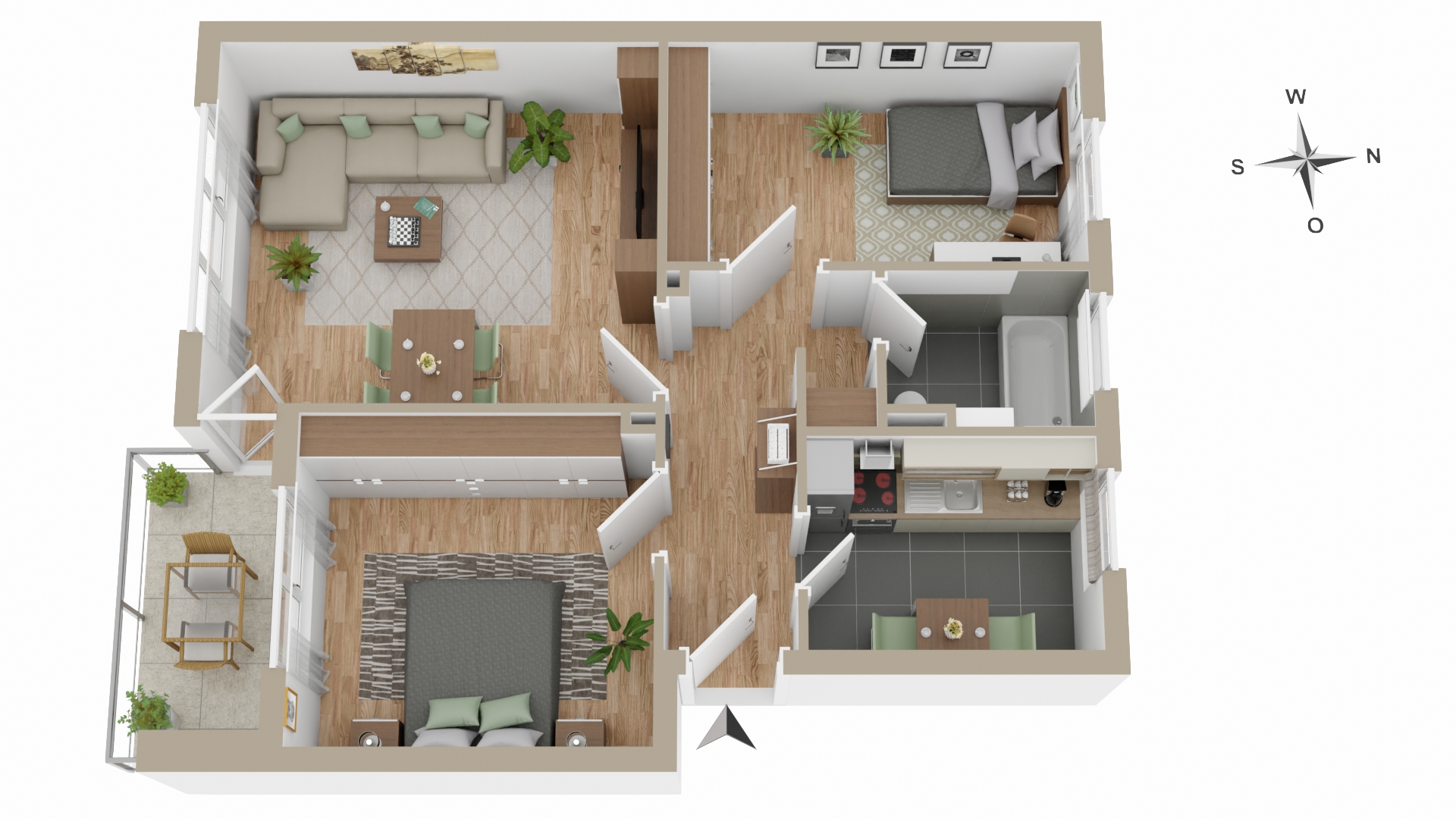 Diese wunderschöne 3-Zimmer-Wohnung mit ca. 58,86 m² Wohnfläche begeistert auf den ersten Blick mit einer durchdachten Raumaufteilung, lichtdurchfluteten Räumen und einer warmen, einladenden Wohnatmosphäre. Die drei großzügigen Zimmer bieten vielfältige Gestaltungsmöglichkeiten und lassen sich ganz nach Ihren persönlichen Wohnwünschen als Wohn-, Schlaf- oder Arbeitszimmer einrichten.